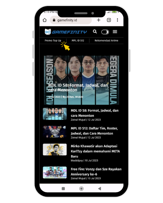 Klik Promo Top Up yang ada di menu atas pada homepage website Gamefinity.id
